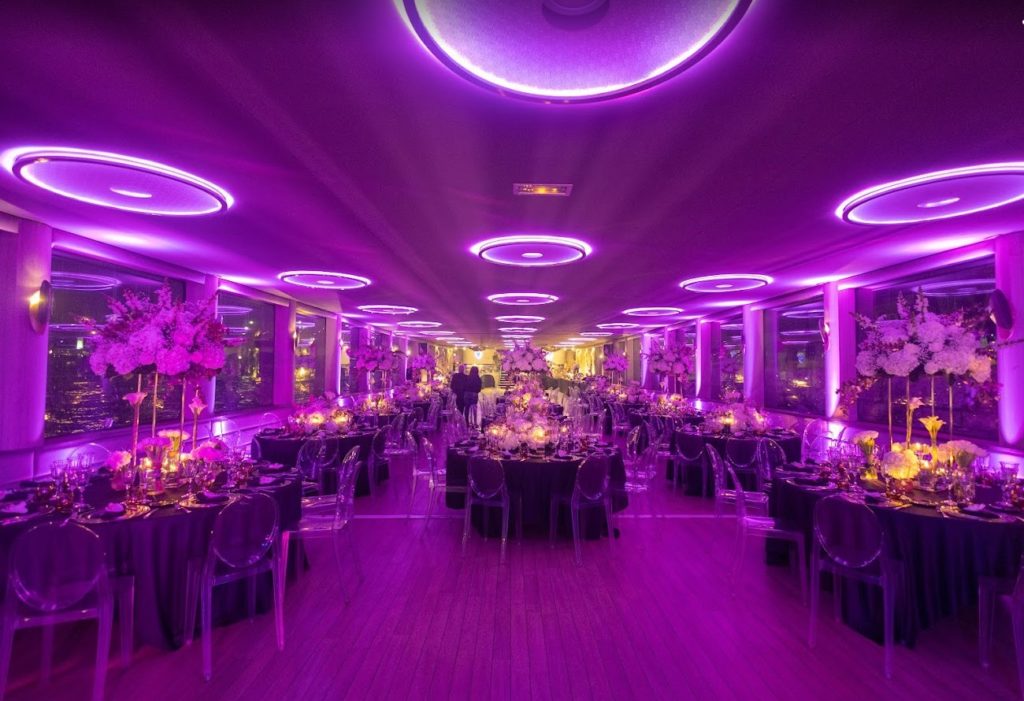Moderne, spacieuse et élégante, cette péniche parisienne propose des volumes inédits sur la Seine lui permettant de recevoir jusqu’à 400 invités à quai ou en croisière.